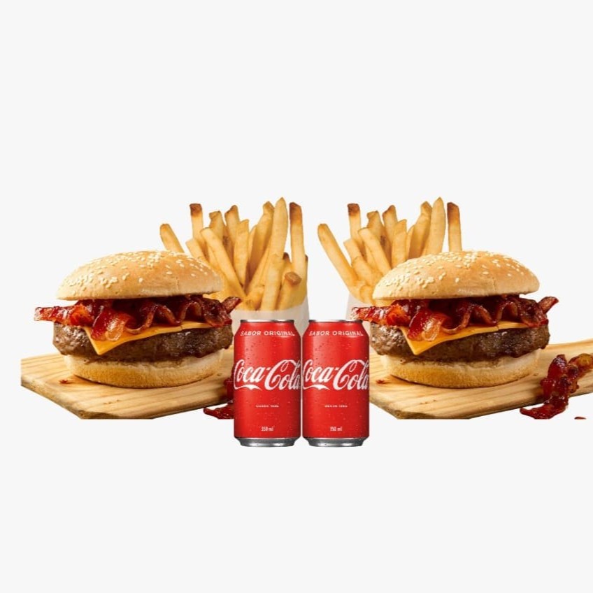 2 Hambuguer´s de Picanha do Zezé (Pão de brioche, carne de hambúrguer de picanha 100g, bacon crocante, queijo cheddar e maionese grill) 2 Bebidas (Refrigerante Lata, Água Mineral ou Suco Lata) 2 Batatas fritas. Combo Hamburguer com dois deliciosos sanduiches com carne de hambúrguer bovino sabor picanha, duas bebidas (refrigerante, água ou suco) e duas batatas fritas. #hamburguer #burger #picanha #bacon #queijocheddar #batatafritas #refrigerante #suco