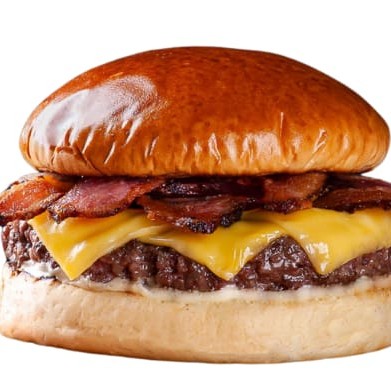 Pão de brioche, carne de hambúrguer de picanha 120g, bacon crocante, queijo cheddar e maionese Grill.