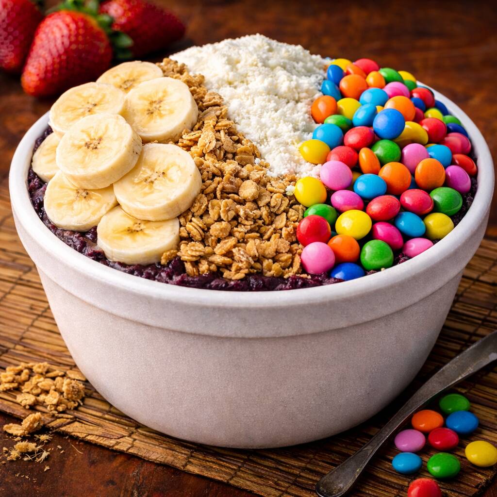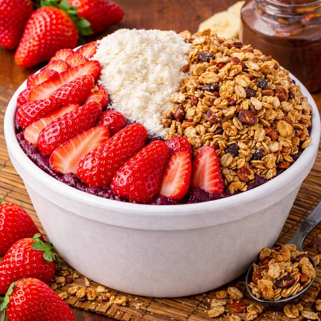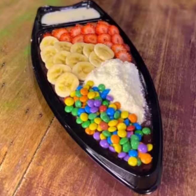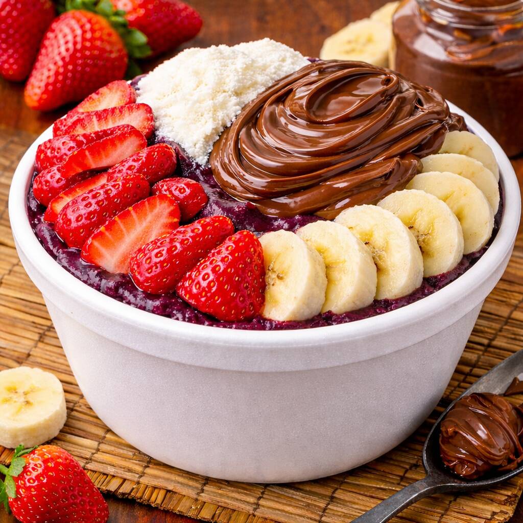 + 5 Complementos inclusos a sua escolha!! Deliciosa barca de Açai 360 Acompanhado com seus complementos favoritos! Saboreie uma autêntica Barca do Açaí 360, 100% Artesanal, produzido com a polpa da fruta e com redução de açúcar – uma experiência saudável e irresistível!
