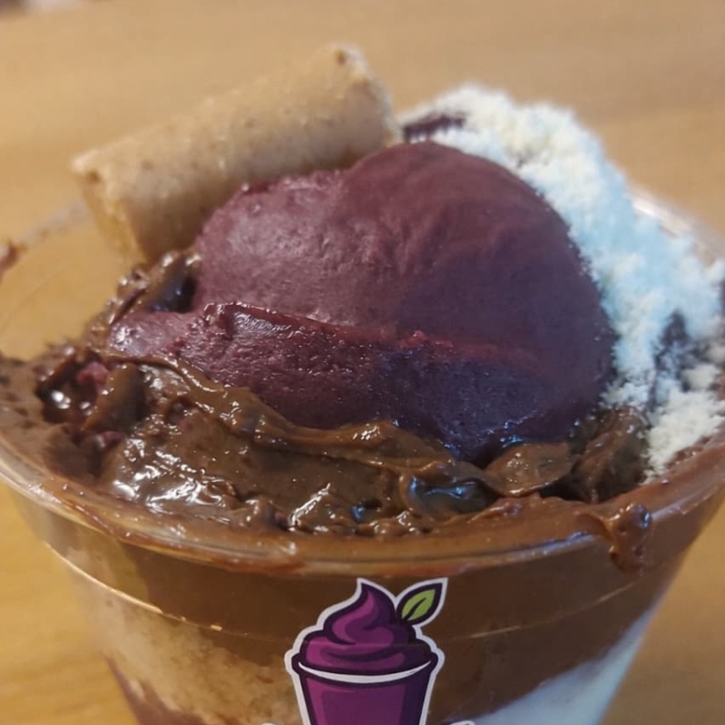 Açaí, paçoca, creme de ovomaltine, leite condensado e leite em pó, copo 250ML (foto meramente ilustrativa)