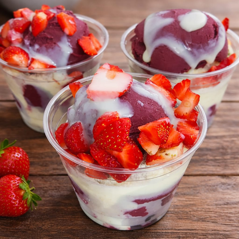 Açaí, morangos, leite condensado e leite em pó, copo 250ML (foto meramente ilustrativa)