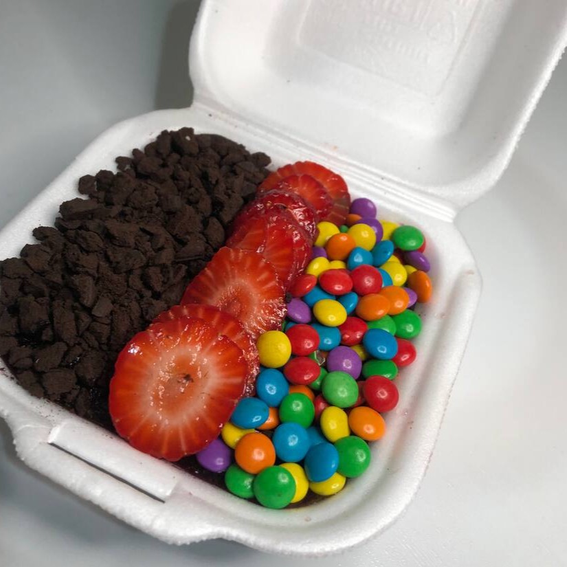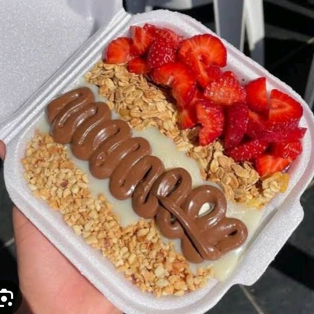 Açaí na tigela G com Creme de ninho, creme de avelã leite pó e morango
