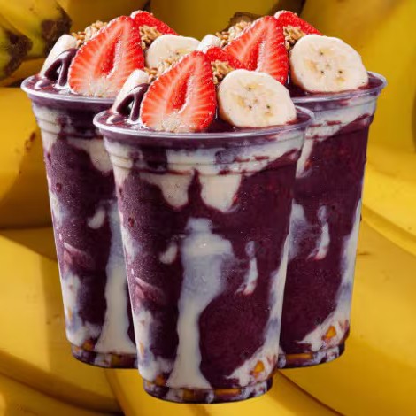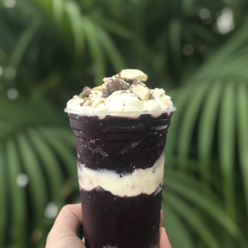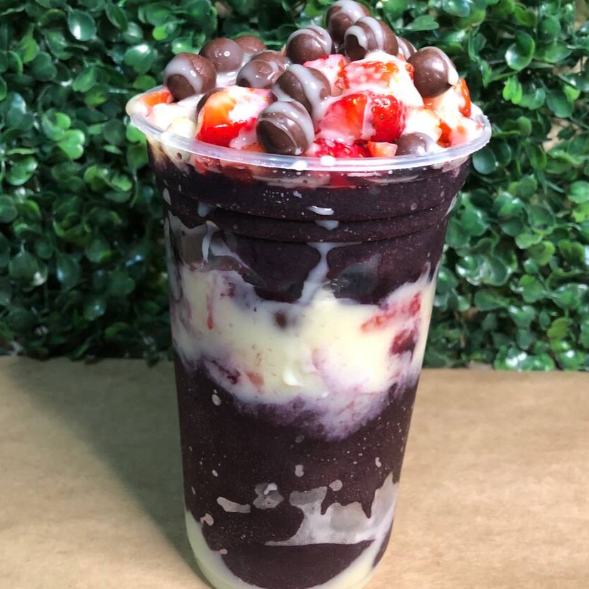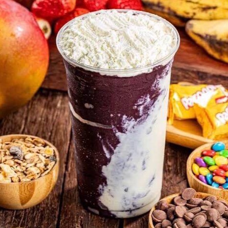 Nosso açaí cremoso e refrescante vem com a sua escolha de 2 complementos e 1 fruta pra deixar do jeitinho que você ama