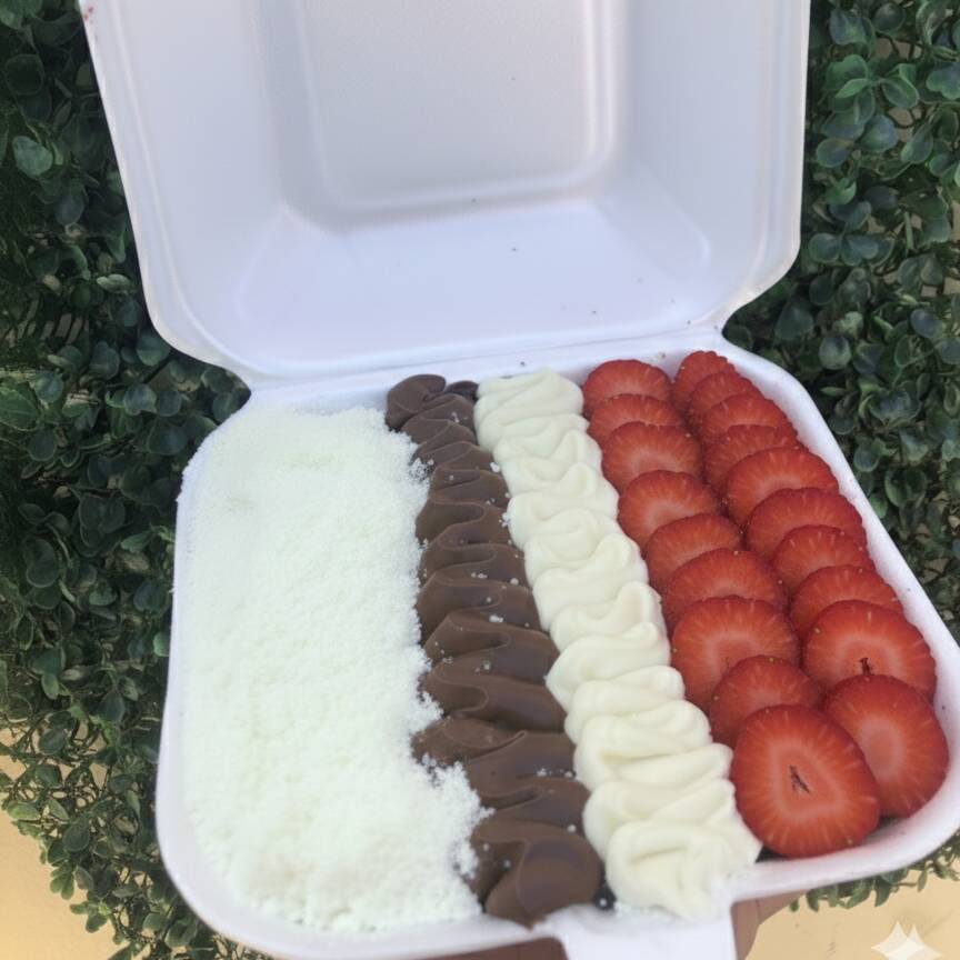 Creme de Morango e Creme de Ninho, leite em pó e leite condensado.