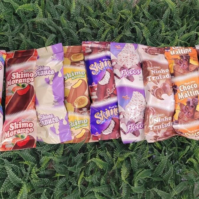 Sabores: brigadeiro, chocomaltine, flocos, Ninho trufado, skimo branco, skimo maracujá, skimo morango, skimo tradicional e unicórnio