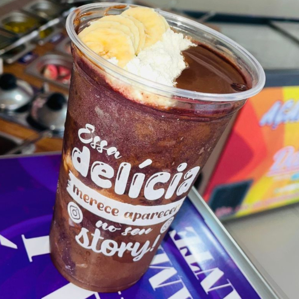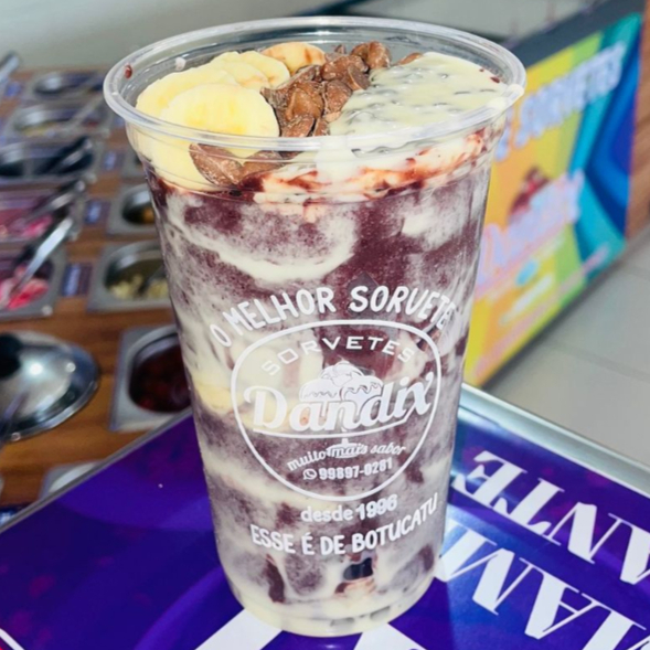 (CLIENTE ESCOLHE) entre Delicioso açaí cremoso, creme amendoim, amendoim granulado e/ou paçoca