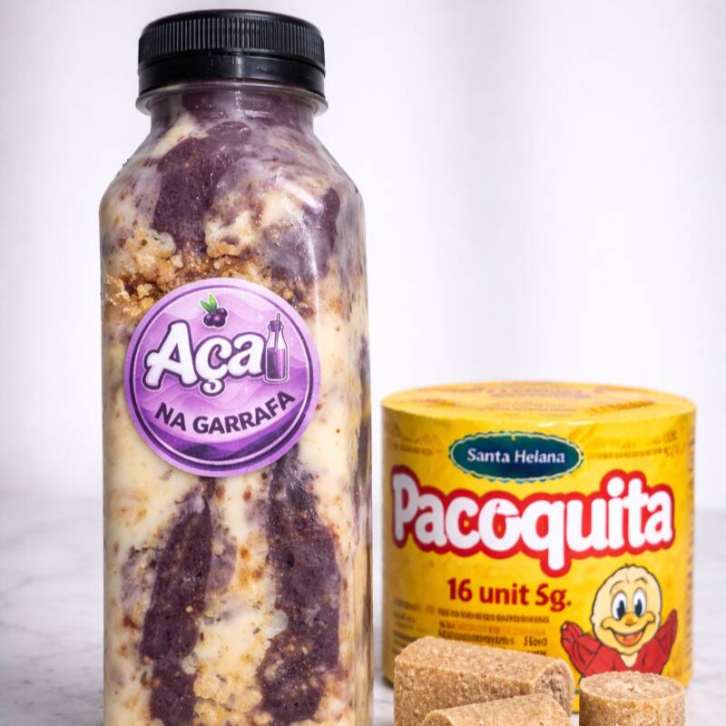 Açaí na garrafa com Paçoca + Leite Condensado + Leite em Pó