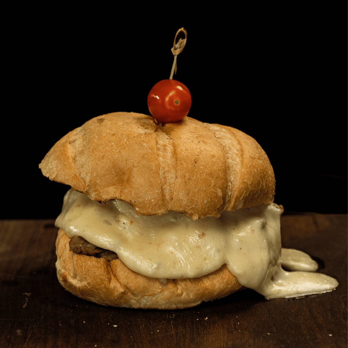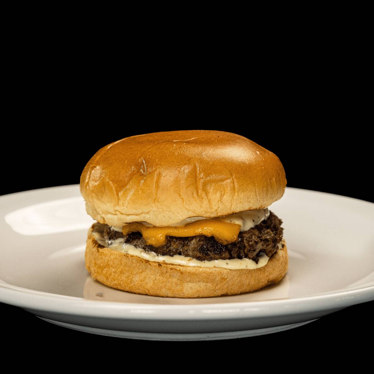 Blend de carne angus e queijo cheddar no pão brioche. Acompanha fritas e maionese Âmbar