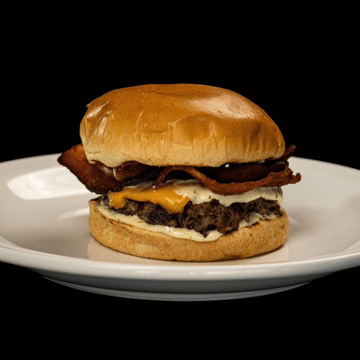 Blend de carne angus, bacon e queijo cheddar no pão brioche. Acompanha fritas e maionese Âmbar