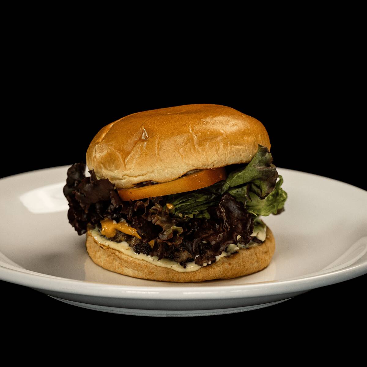 Blend de carne angus, alface, tomate e queijo cheddar no pão brioche. Acompanha fritas e maionese Âmbar.