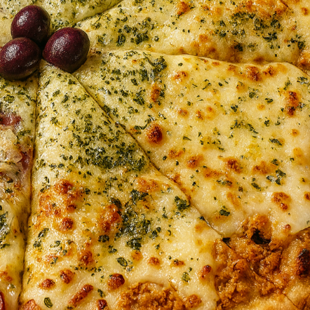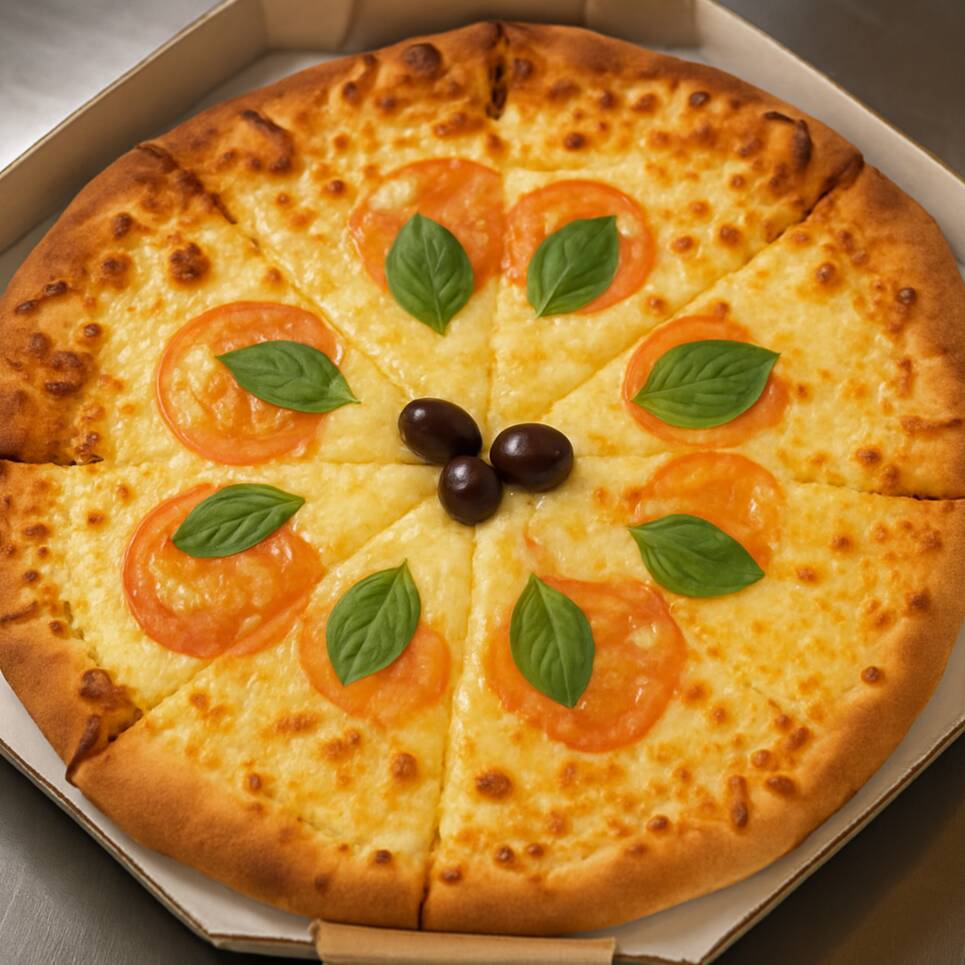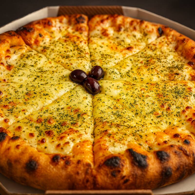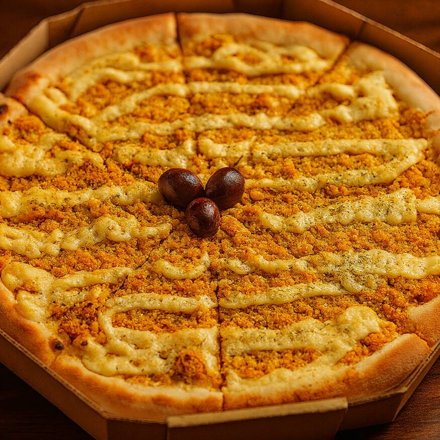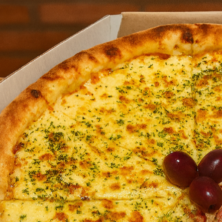 Molho especial, requeijão, muçarela, parmesão, provolone e azeitona preta.