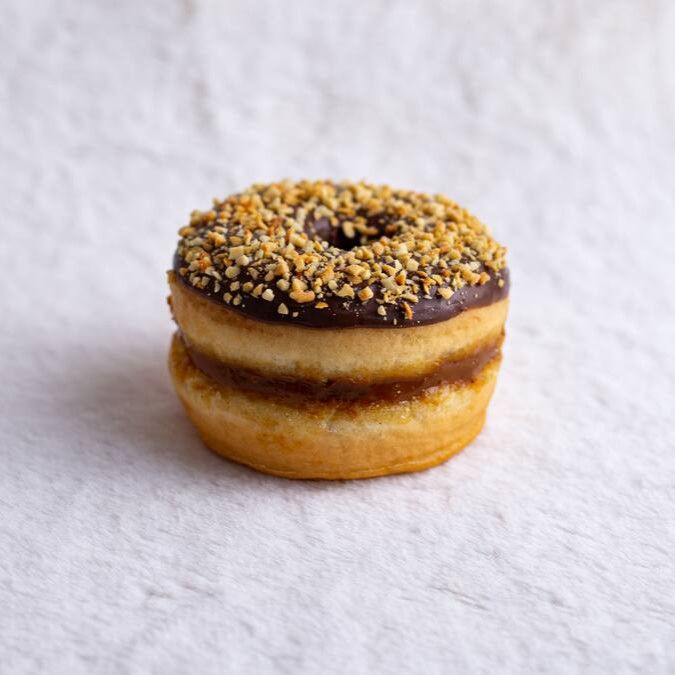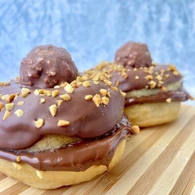 Recheado com Nutella Original, coberto com chocolate nobre e finalizado com pedaços de amendoim que lembram o sabor inconfundível do Ferrero Rocher — agora em formato de donut.