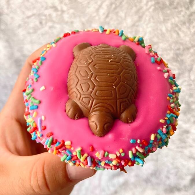 Deliciosamente recheado com o clássico brigadeiro de panela, finalizado com chocolate rosa, granulado colorido e uma tortuguita que leva direto pra infância. Um donut que desperta memória, sorriso e vontade de repetir, não é?!