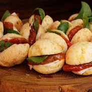 Ingredientes: Pão de Queijo 90g, Rúcula, Tomate Confit