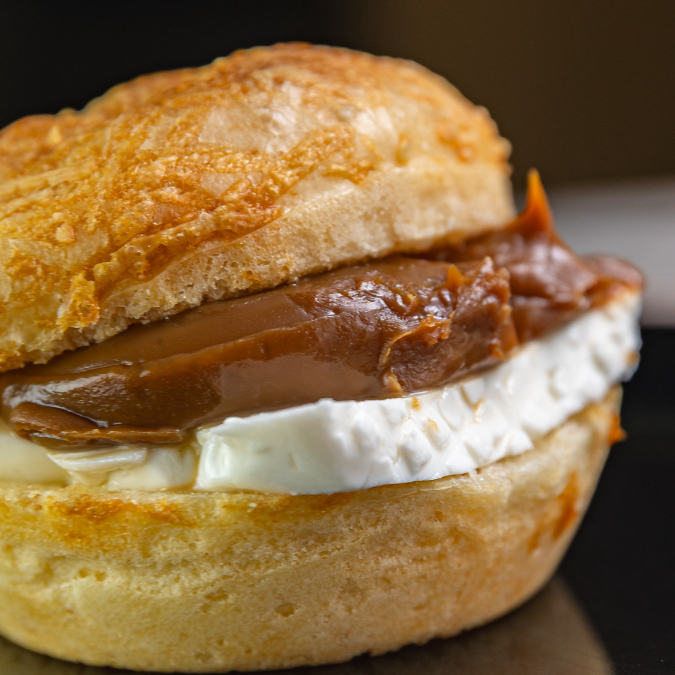 Ingredientes: Pão de Queijo 90g, Queijo Fresco e Doce de Leite