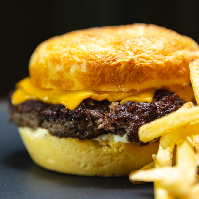 Ingredientes: Hambúrguer 120g, Maionese Defumada, Pão de Queijo, Queijo Cheddar Fatiado