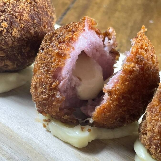 Bolinho com linguiça artesanal, acompanho molhos. 14unidades