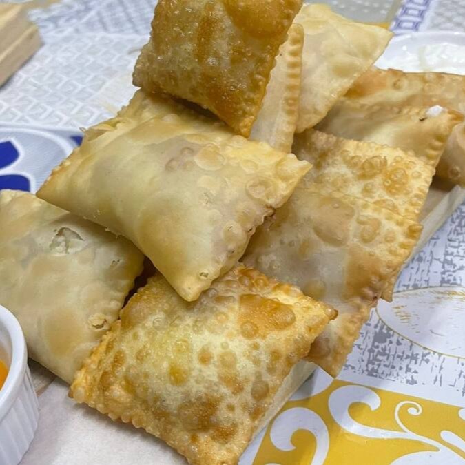 6 unidades de mini pastel, com banana, doce de leite, açucar e canela.