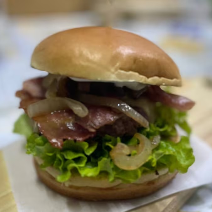 Hamburguer Artesanal, Com Bacon, Cebola Caramelizada