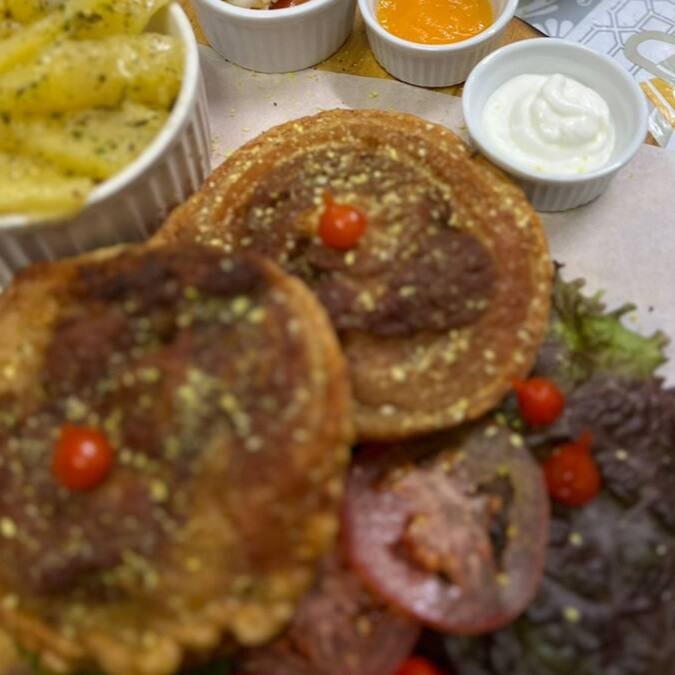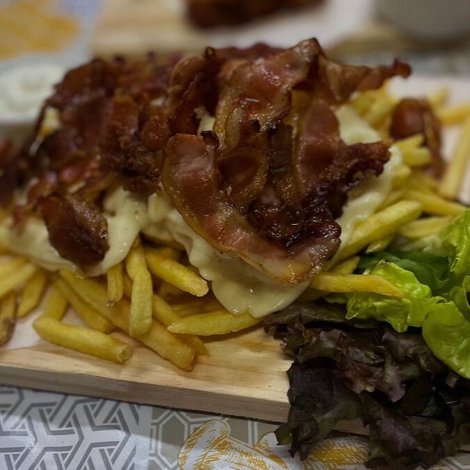 Acompanha, arroz e fritas. Servem 2 pessoas. O recheio é preparado com frango desfiado refogado com alho, cebola e temperos especiais, envolvido em uma camada generosa de cream cheese que deixa tudo ainda mais cremoso. Por cima, uma camada de purê macio e a finalização com queijo derretido que faz toda a diferença.