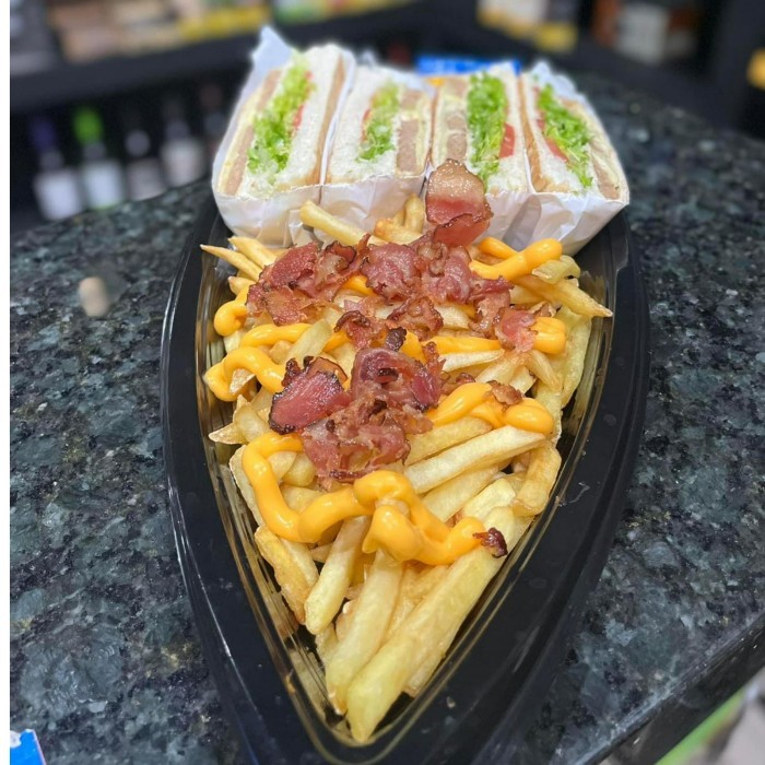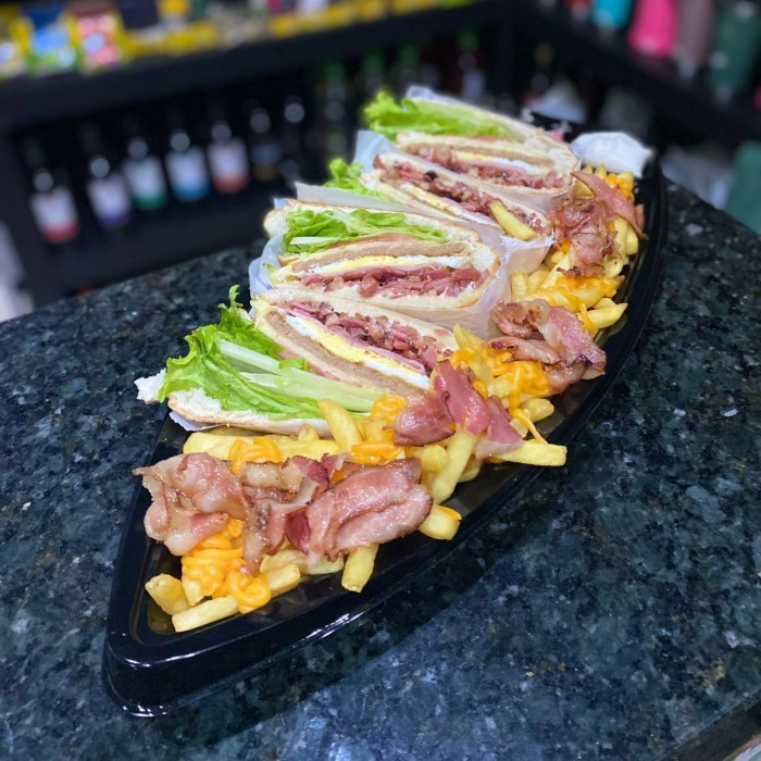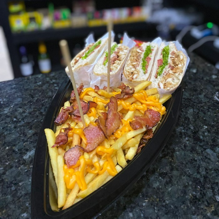 3 x-salada, 400g de batata com cheddar e bacon.