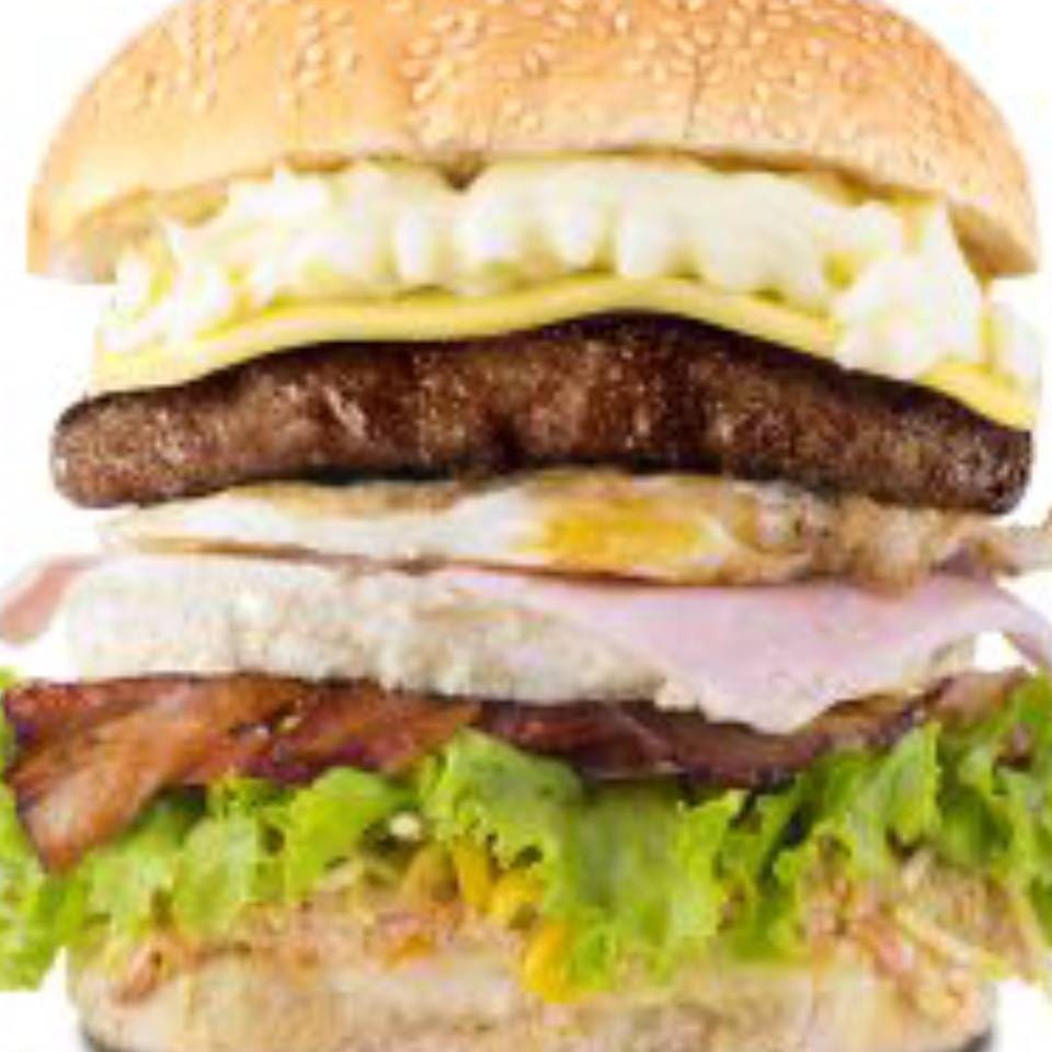 Hamburguer,queijo,presunto.calabresa,omelete,milho,Catupiry,tomate,alface e maionese