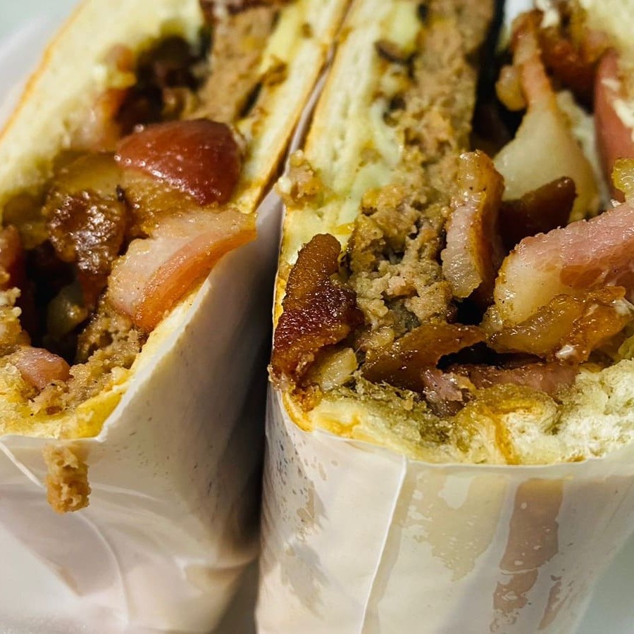 Ingredientes: Bacon, Carne, Maionese, Mussarela, Ovo