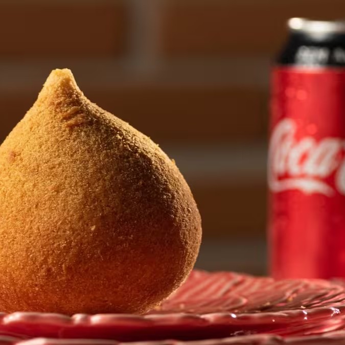 1 Coxinha Grande recheada + Coca-Cola 350ml. Simples, saboroso e perfeito para qualquer momento!