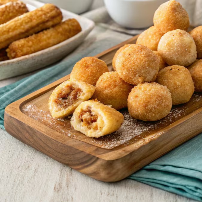 15 mini churros recheados com doce de leite cremoso, polvilhados com açúcar e canela, acompanhados de uma Coca-Cola (350ml) bem gelada para completar a experiência.