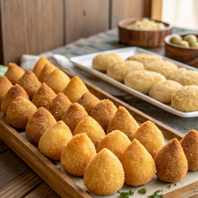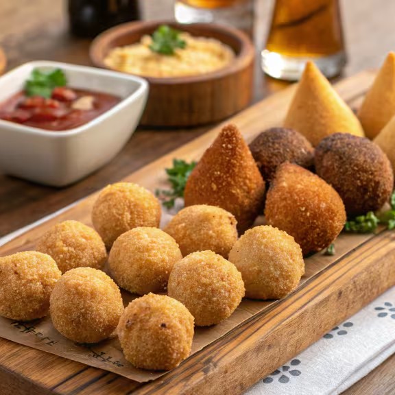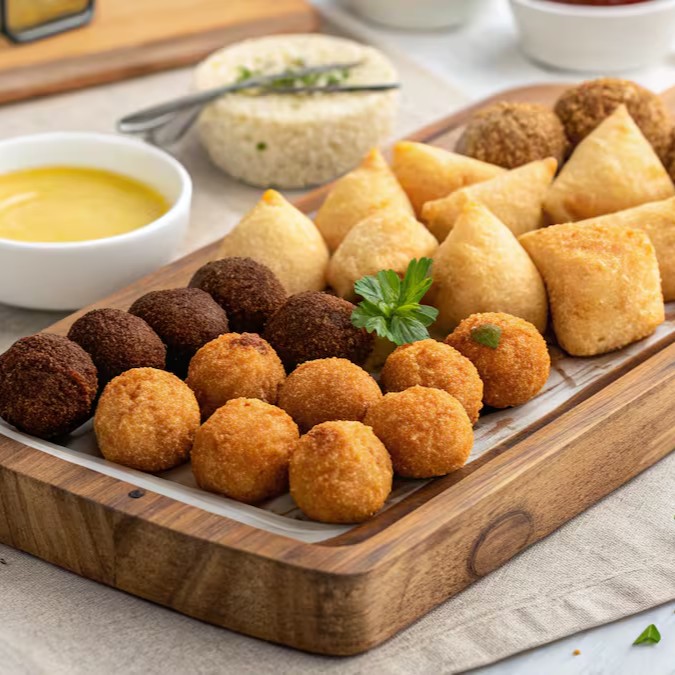 40 Mini Salgadinhos Fritos Sortidos: Seleção irresistível com coxinha, kibe, bolinha de queijo e mais! Perfeitos para festas ou petiscar com a galera!
