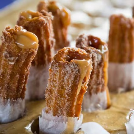 Churros gourmet recheado com doce de leite cremoso e finalizado com crocante de amendoim. Uma explosão de sabor em cada mordida!