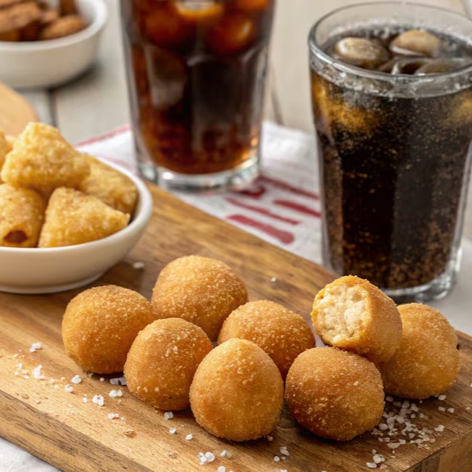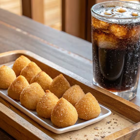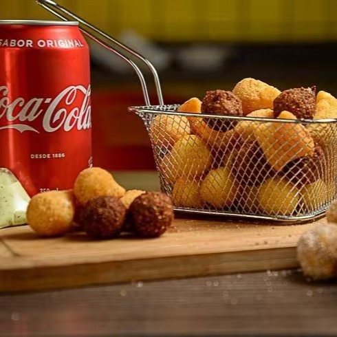 40 Mini Salgados Fritos + 2 Coca-Cola (350ml): Deliciosa variedade de salgadinhos crocantes acompanhados de Coca bem gelada!