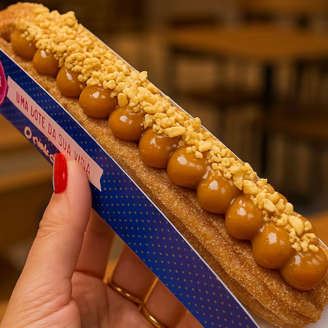 Sabor premium para os apaixonados por churros! Massa crocante, recheio cremoso de doce de leite e uma camada extra de granulado preto por cima, sem custo adicional.