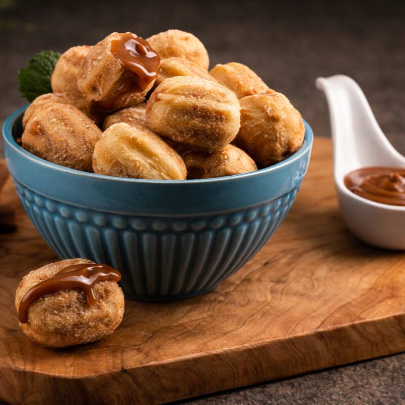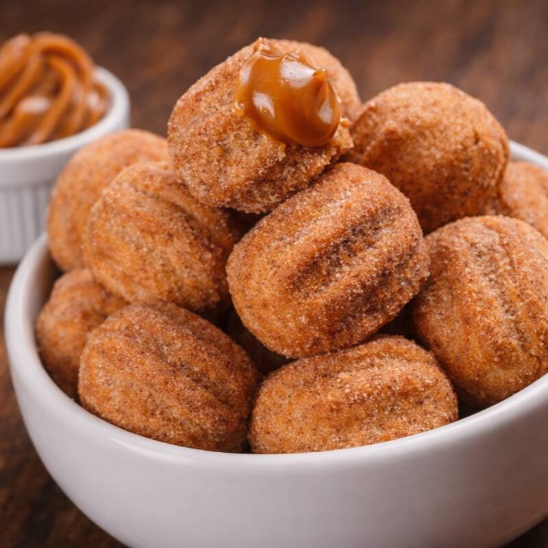 Casquinha crocante por fora, macio por dentro e recheado com doce de leite cremoso! Finalizado com açúcar e canela, do jeitinho que todo mundo ama!