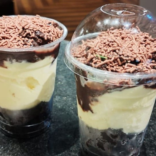 Massa de brownie,sorvete de creme,brigadeiro e granulado 300ml