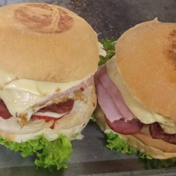 Hamburguer, bacom,calabresa,ovo,presunto,queijo e salada