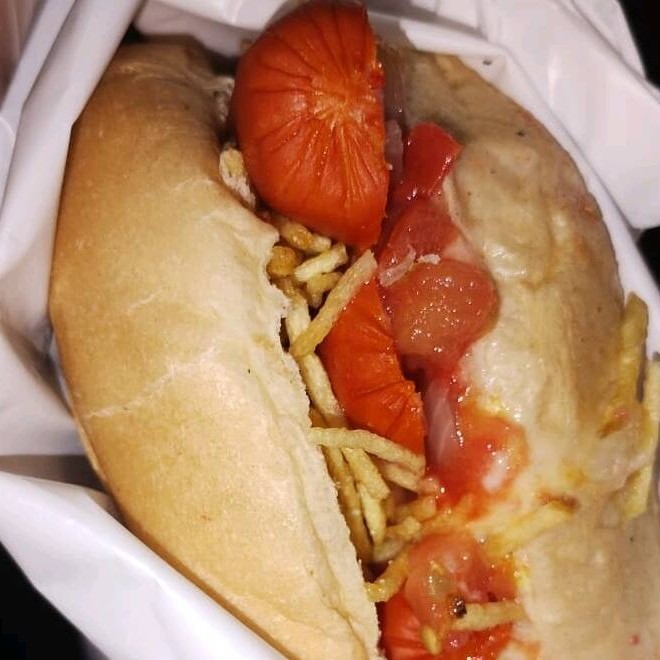 2 salsichas, vinagrete, milho, bacon, calabresa, Catupiry e batata palha