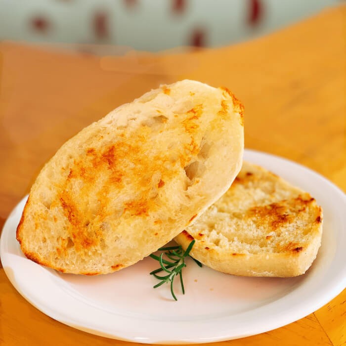 Mini baguete francesa de fermentação natural na chapa com manteiga.