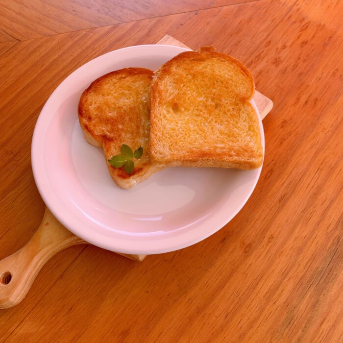 02 fatias de pão soft white de fermentação natural, com manteiga, tostado na chapa.