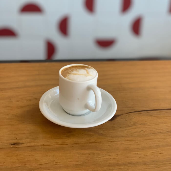 Café Expresso com uma manchadinha de espuma de leite, bebida levemente mais suave que o Expresso tradicional sem perder a cremosidade.