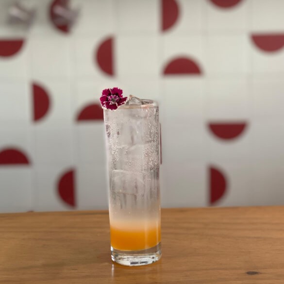 Xarope de tangerina, gelo e água gaseificada.