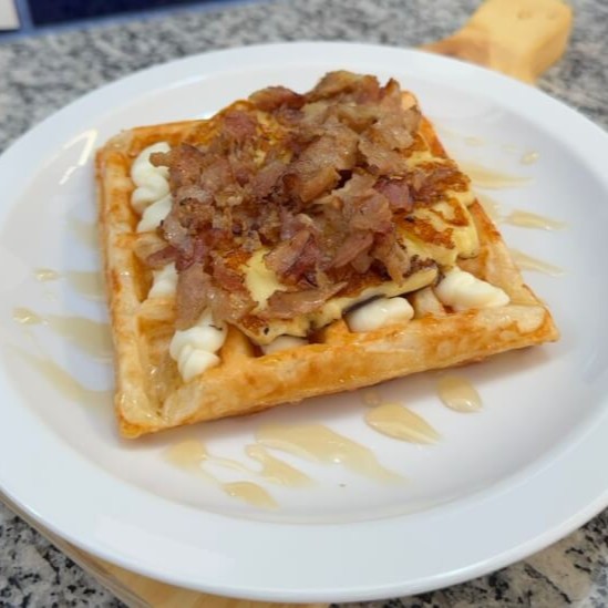 Waffle Queijo Branco E Mel E Bacon