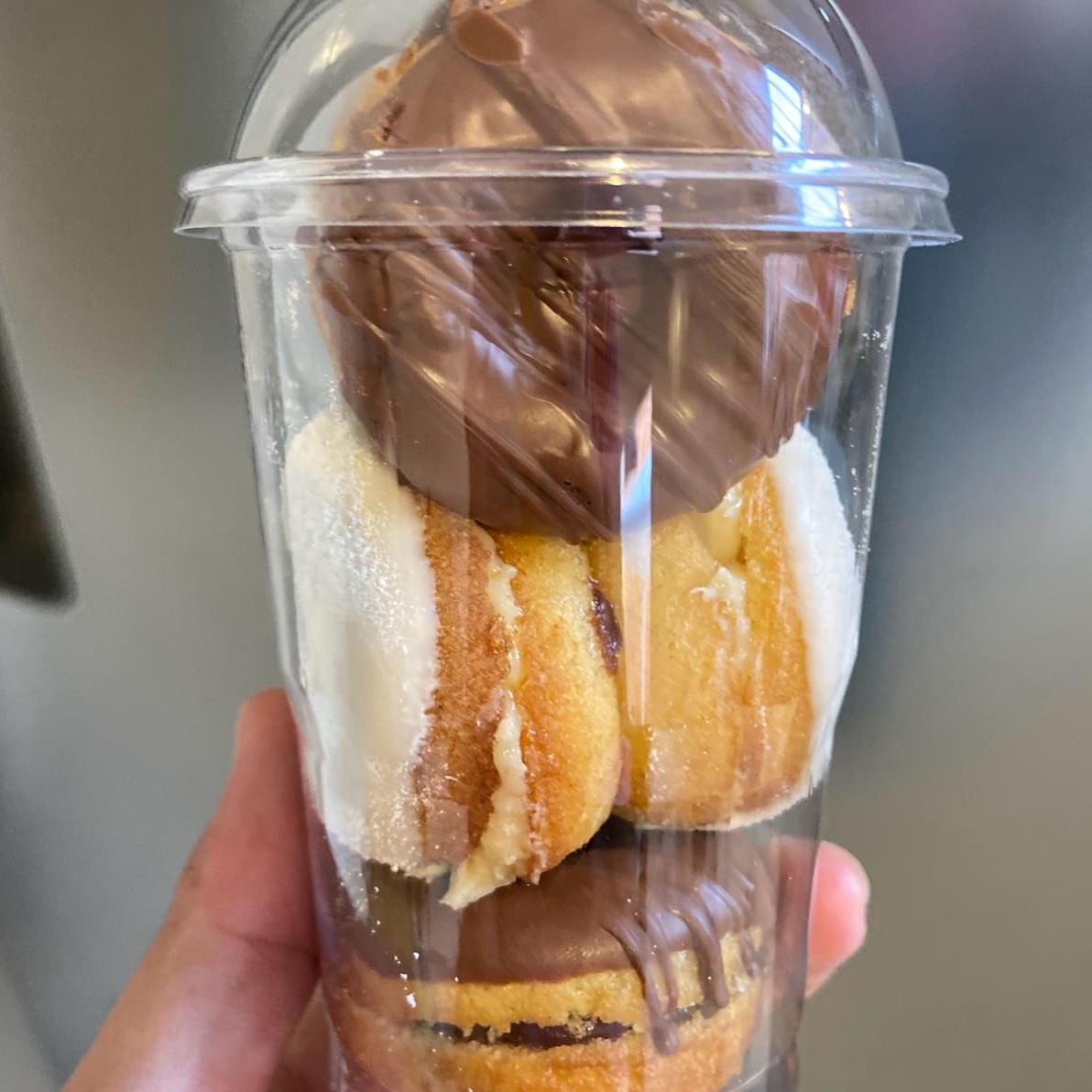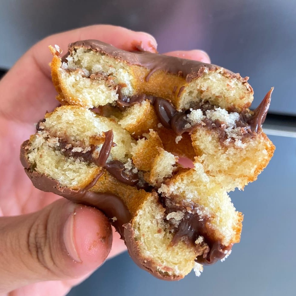 1 unidade com recheio chocolate e cobertura chocolate, massa de baunilha super fofinha e saborosa! #minidonuts #chocolate #brigadeiro