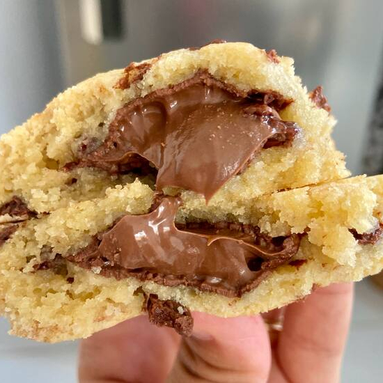 Cookie, feito com massa artesanal e recheado com Nutella. Perfeito para quem ama um doce irresistível, com sabor intenso de chocolate e avelã a cada mordida. 75g #Nutella #cookie #cookierecheado