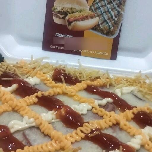 Pão , 3 salsicha picada , salada ( repolho e tomate ) batata palha , bacon , milho , ervilha , queijo ralado , pedaços de frango , purê de batata , maionese , ketchup , cheddar
