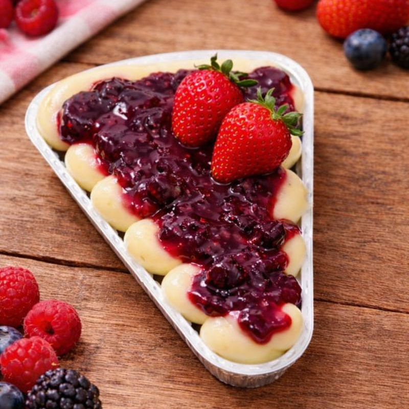 Nosso brownie é macio, intenso no chocolate, coberto com um brigadeiro de Ninho e finalizado com geleia de frutas vermelhas, que traz o equilíbrio perfeito entre o doce suave do Ninho e a leve acidez das frutas.