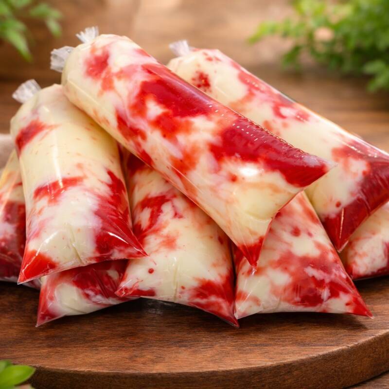 Geladinho cremoso de Ninho recheado com geleia de morango . Uma combinação equilibrada, refrescante e cheia de sabor.