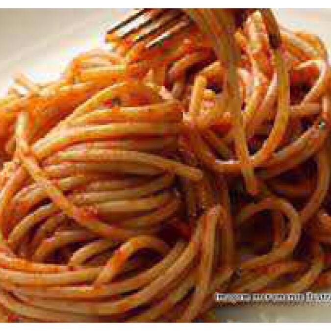 Macarrão com molho vermelho, podendo ser parafuso ou espaguete.