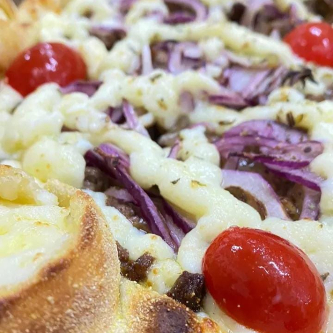 Até 3 sabores (tamanho 35 cm). Sabores vegetarianos podem se tornar veganos (troca do queijo base pelo queijo cremoso e Catupiry da casa).