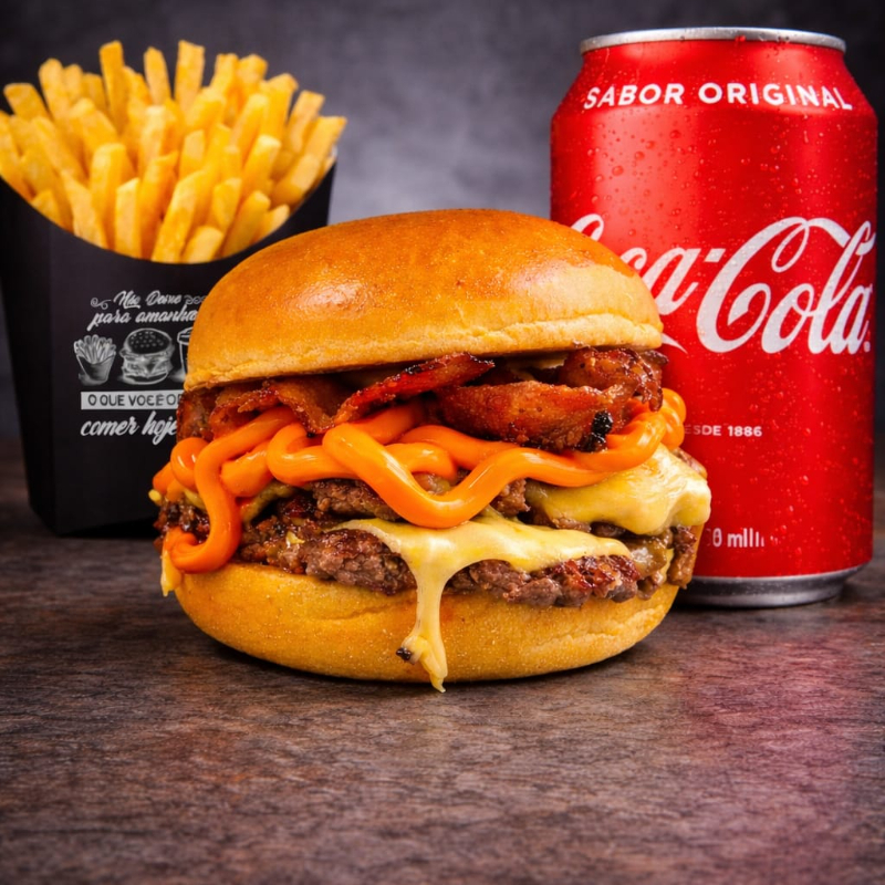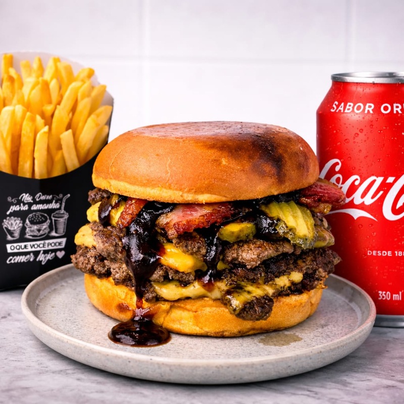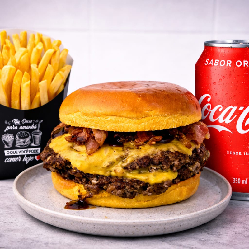 1 SMASH TRIPLO BARBECUE BACON + 1 BATATA FRITA INDIVIDUAL +1 COCA LATA 350ML